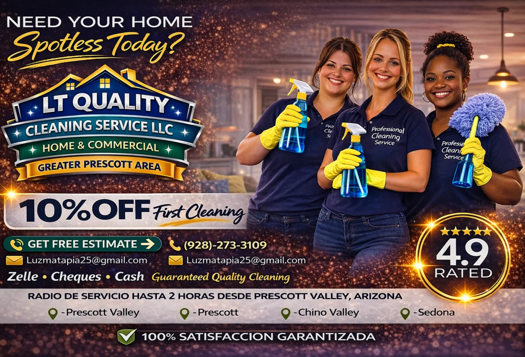 LT QUALITY CLEANING SERVICE LLC proudly serves Prescott Valley, Prescott, Chino Valley, Sedona, and surrounding areas β up to 2 hours from Prescott Valley, Arizona π‘